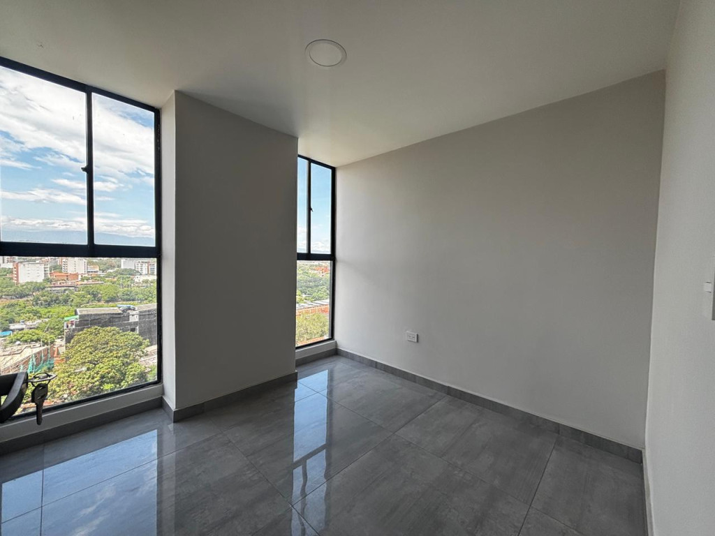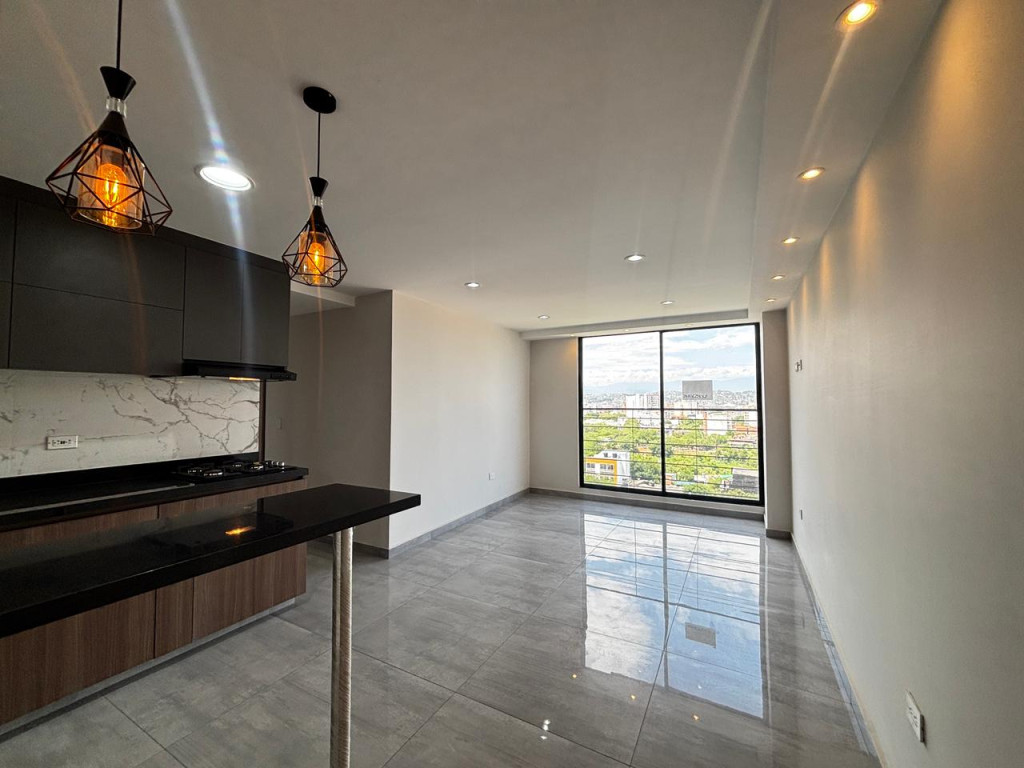 Apartamento para estrenar consta de: sala comedor, cocina semi integral con barra americana y gas natural, zona de lavado, 1 baño social, 2 habitaciones ( la principal con closet y baño privado ) acabados de lujo, piso en porcelanato, parqueadero asignado cubierto, el edificio ofrece vigilancia 24/7, jacuzzi y zona BBQ.
