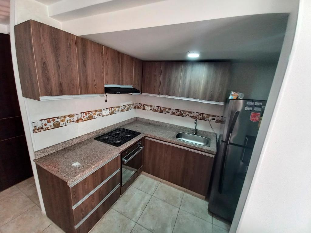 Este apartamento cuenta con una acogedora sala de estar que se conecta al balcón, sala comedor, cocina integral con su respectivo cuarto de lavado. Dispone de tres habitaciones, cada una con su propio closet, brindando comodidad y organización. La habitación principal incluye un baño privado, y adicionalmente, el apartamento cuenta con un baño auxiliar para mayor practicidad y con vigilancia de portería 24h.