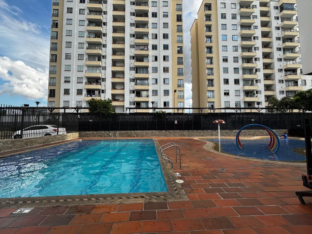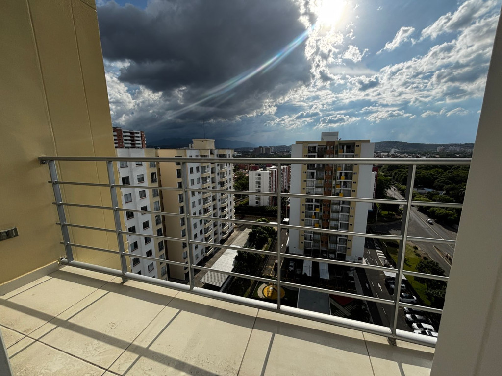 Apartamento ubicado en un piso 14 con aproximadamente 70mts2 consta de sala, comedor, cocina integral con barra estilo americana, balcón zona de lavado, 1 baño social, 3 habitaciones con closet (la principal con closet), 2 parqueaderos cubiertos. El conjunto ofrece piscina, vigilancia 24Hrs, parque para niños, zona social. Si solo se requiere 1 parqueadero el arriendo quedaría en $1.880.000 con administracion.
