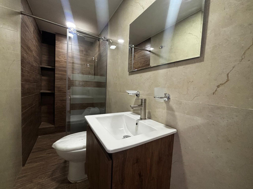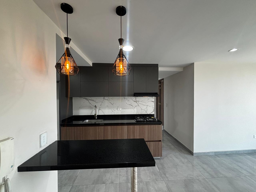 apartamento para estrenar consta de: sala comedor, cocina semi integral con barra americana y gas natural, zona de lavado, 1 baño social, 2 habitaciones ( la principal con closet y baño privado ) acabados de lujo, piso en porcelanato, parqueadero asignado cubierto, el edificio ofrece vigilancia 24/7, jacuzzi y zona BBQ. ADMINISTRACION INCLUIDA EN EL CANON DE ARRIENDO