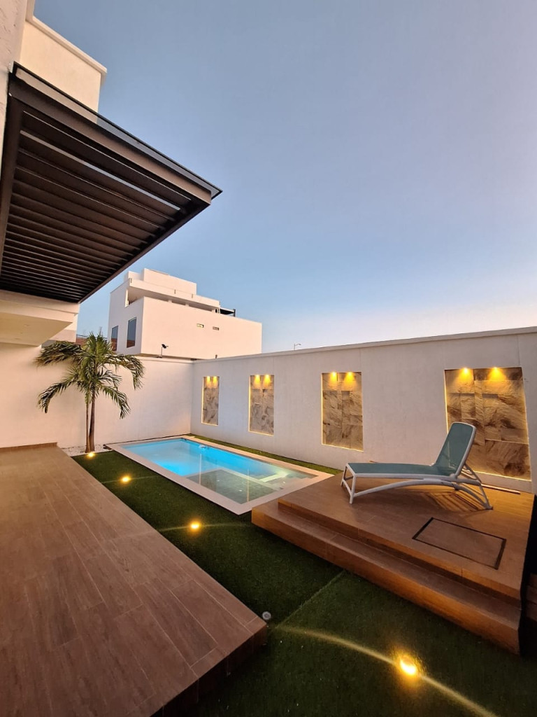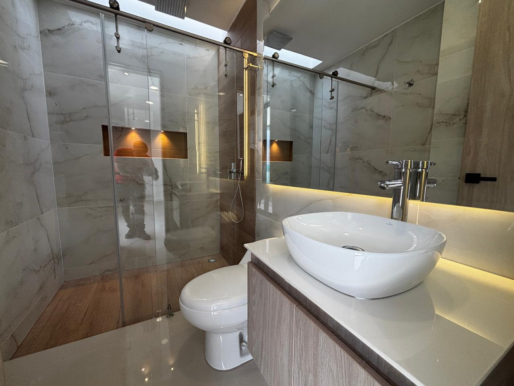 Hermosa casa ubicada en uno de los sectores con mayor valorización y exclusividad en bocono con 210mts2 de construidos consta de: 1 NIVEL; Parqueadero: 2 camionetas, Jardín en fachada con iluminación, Sala doble altura imponente, comedor y cocina tipo americana. Carpintería en MDF Alto brillo y herrajes cierre lento, 1 habitación auxiliar diseñada para cama King (2x2), con closet amplio y baño privado, Patio de ropas con ventilación e iluminación natural. Espacio para lavadora, lavadero y lava trapero, 1 baño social con lavamanos y sanitario, Puerta principal con cerradura digital, huella digital y reconocimiento facial, Tanque de agua subterráneo de 5000 litros, Piscina, zonas verdes; NIVEL 2, 1 habitacion principal con baño privado y walking closet, 1 habitación auxiliar diseñada para cama King (2x2), con closet amplio y baño privado., 1 closet de linos en el pasillo. Independiente de los closets de las habitaciones, NIVEL 3; Tanque de reserva de 2000 litros. El conjunto cuenta con agua de pozo y planta de tratamiento propio, cancha de tenis, cancha sintética