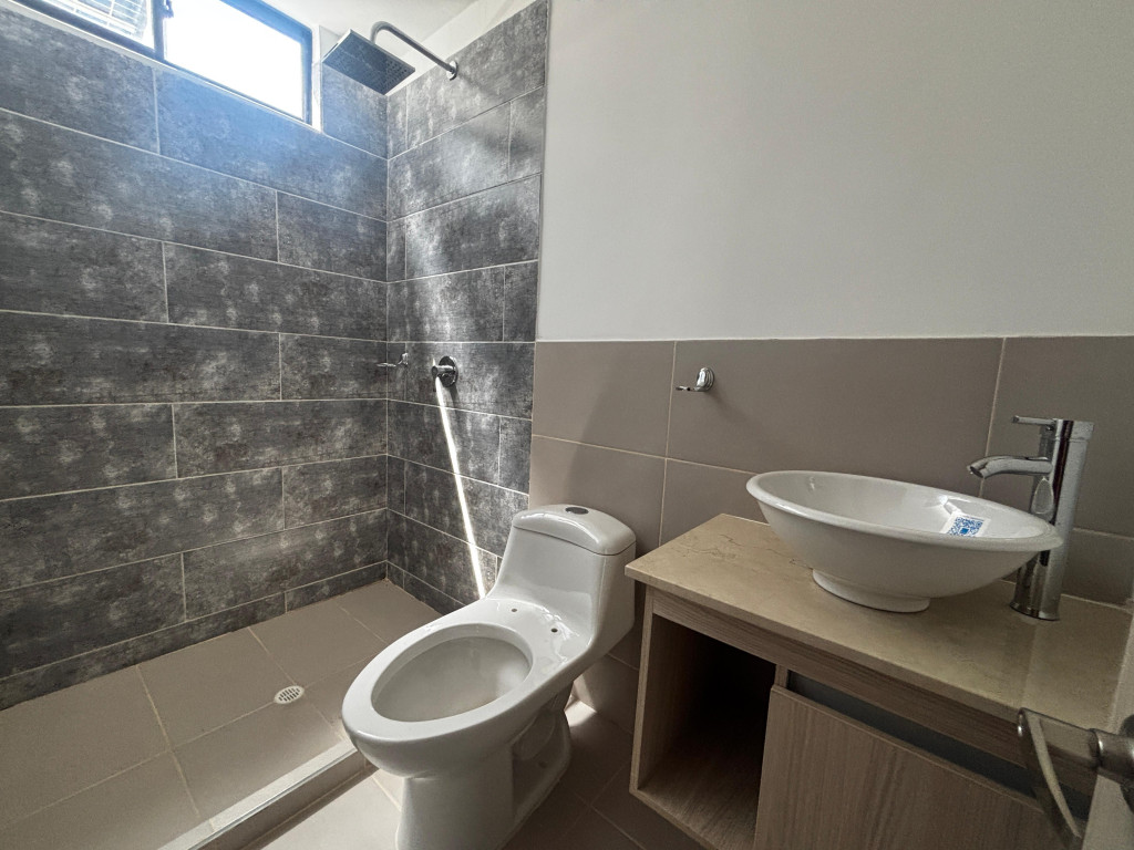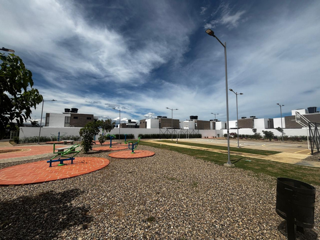 Esta hermosa casa de 2 plantas consta de: 1 NIVEL; Sala comedor, cocina integral con gas natural, 1 baño social, tiene un patio trasero con una pequeña zona verde, zona de lavado, 2 NIVEL; con 3 habitaciones, cada una de las habitaciones tiene su baño independiente, parqueadero privado. El conjunto tiene unas buenas zonas comunes con piscina bastante amplia, BBQ, sauna, turco, gimnasio, parque para niños, salón social.