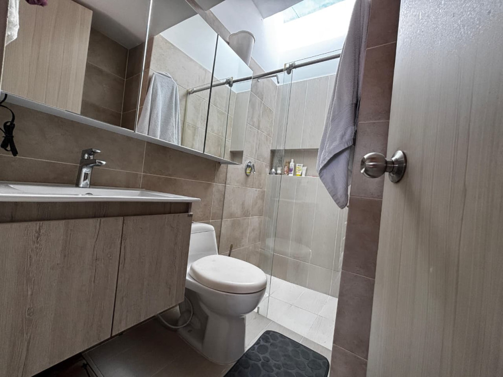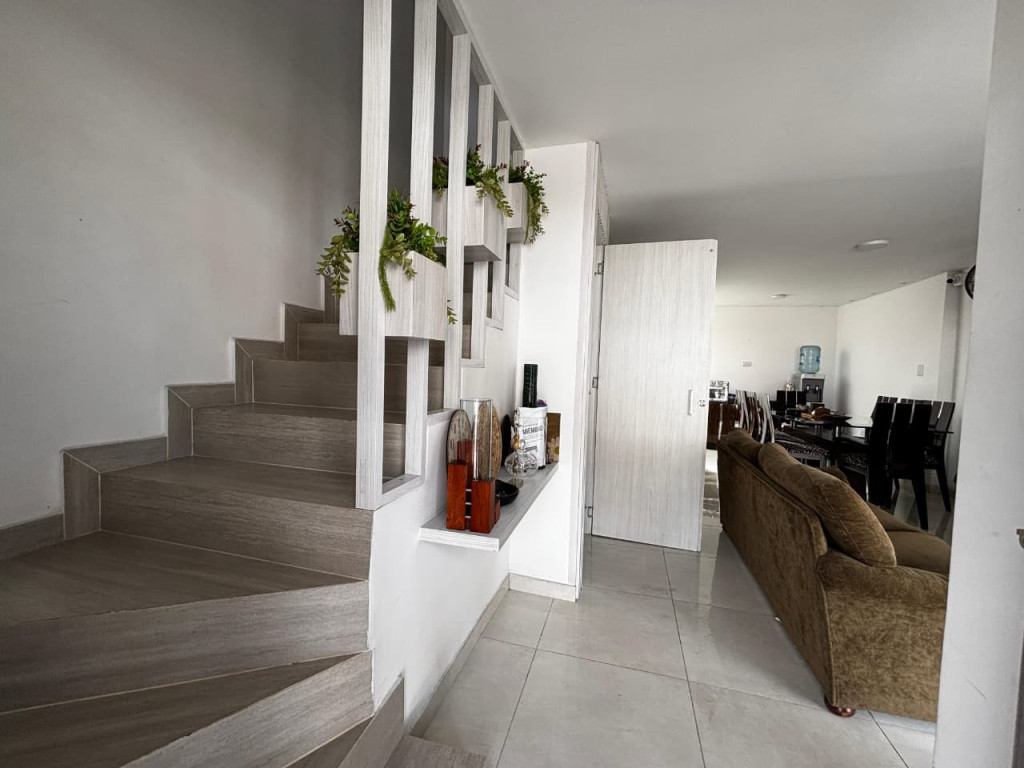Casa en condominio, consta de dos niveles: primer nivel tiene sala-comedor, cocina integral, 1 baño social, zona de ropas y 1 parqueadero descubierto. El segundo nivel cuenta con 2 habitaciones cada una con su baño privado la habitación auxiliar con espacio para closet y la principal con balcón y closet amplio. El condominio ofrece servicio de portería, piscina, zona infantil y salón comunal. En el sector encontrarás droguerías, supermercados, colegios, parques, zonas deportivas, iglesias, parqueaderos y estación de servicio