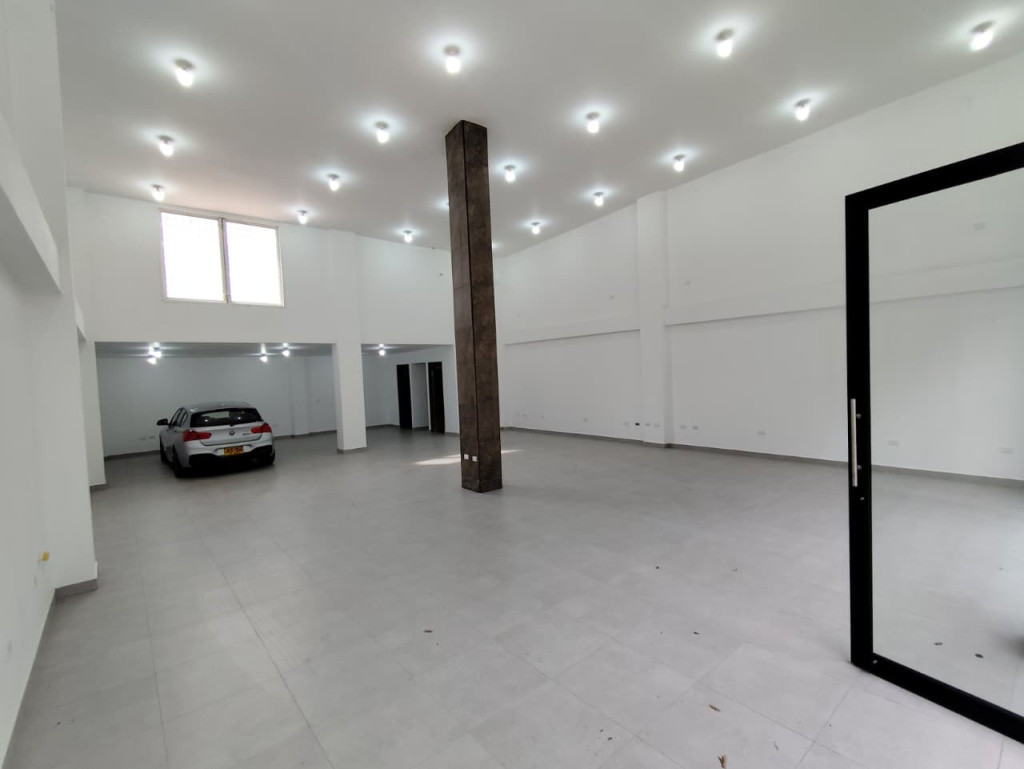 Local comercial con 10 metros de frente y 16,50 metros de fondo, para un área total de 165 m². Cuenta con altura de 6,80 metros (parte baja de 3 metros), ideal para mezzanine o adecuaciones comerciales. Dispone de bahía con derecho para 4 vehículos, 3 puntos de desagüe, instalación eléctrica de alta potencia (30.000 vatios), apta para carga de vehículo o motocicleta eléctrica. Piso en porcelanato mate, ubicado en zona de alto tráfico comercial, con flujo aproximado de 4.000 personas.