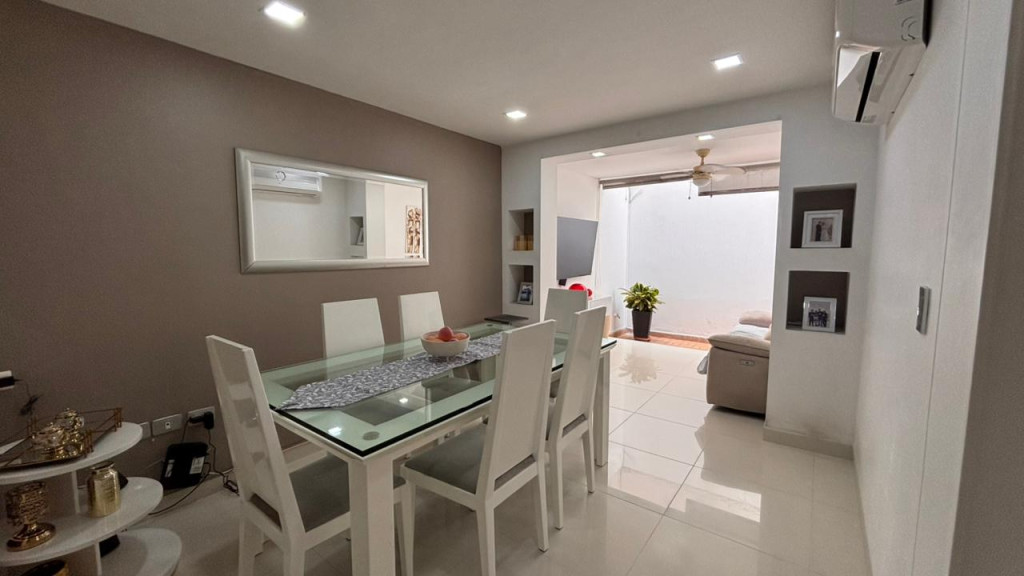 En una ubicación privilegiada se encuentra esta elegante casa con 210mts2 con una distribución de 2 niveles: 1 nivel; Porche cubierto para 2 vehículos, sala de start, un estudio, comedor, sala de TV, 2 baños auxiliares, zona de lavado, cocina integral con gas a bombona y perfecta para aquellos que valoran el espacio y la comodidad. 2 nivel: 3 habitaciones (la principal con baño y balcón amplio), y 1 baño auxiliar. Experimenta la sensación de amplitud y luminosidad que caracteriza a este hogar, donde cada ambiente invita a la relajación y al disfrute. Una oportunidad única para quienes buscan un lugar donde la calidad de vida y el buen gusto se fusionan en un solo espacio.